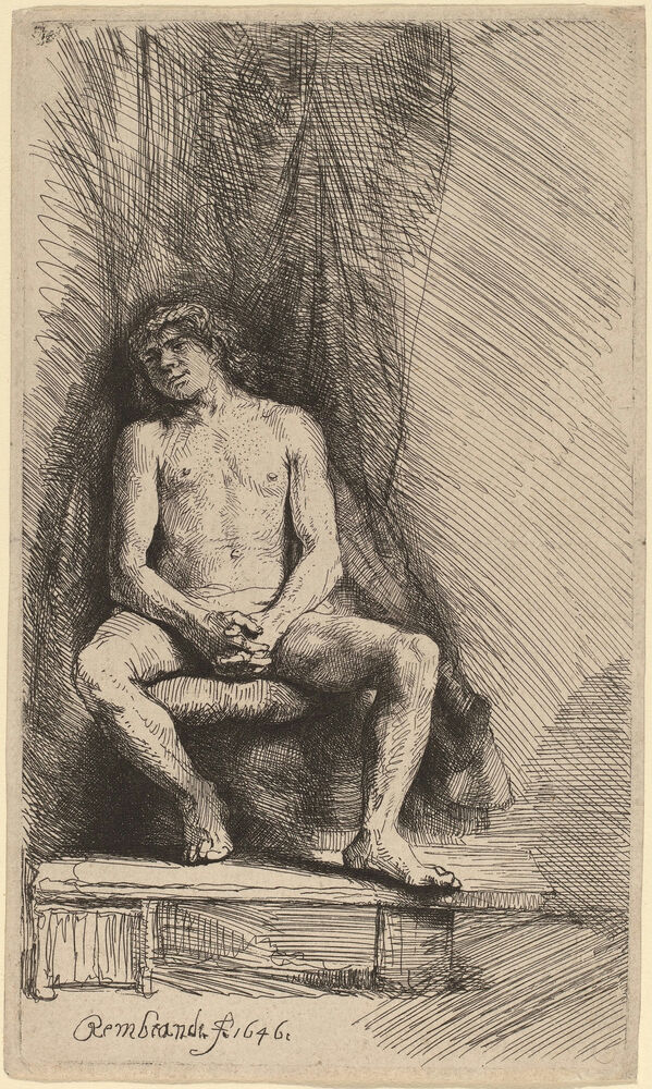 Nude Man Seated before a Curtain