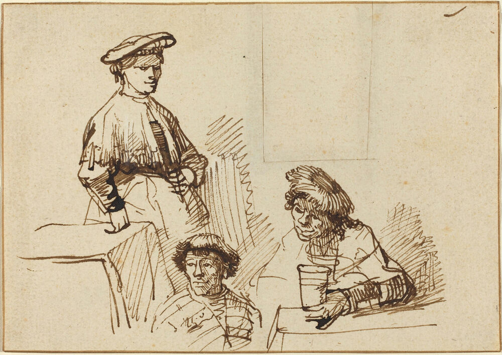 Sketches from a Tavern: Woman Standing and Two Men Seated