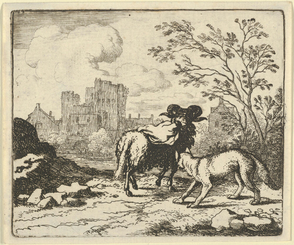 Renard Sends the Ram Back to the Lion with a Package Containing the Rabbit's Head from Hendrick van Alcmar's Renard The Fox
