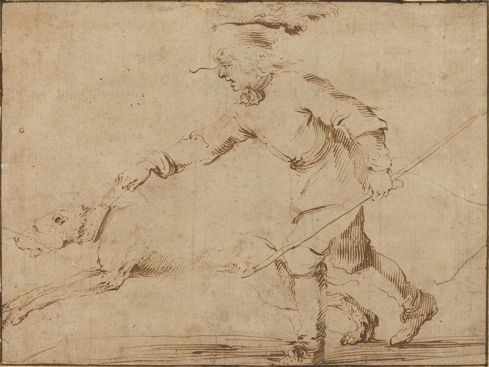 Huntsman with a Hound on a Leash