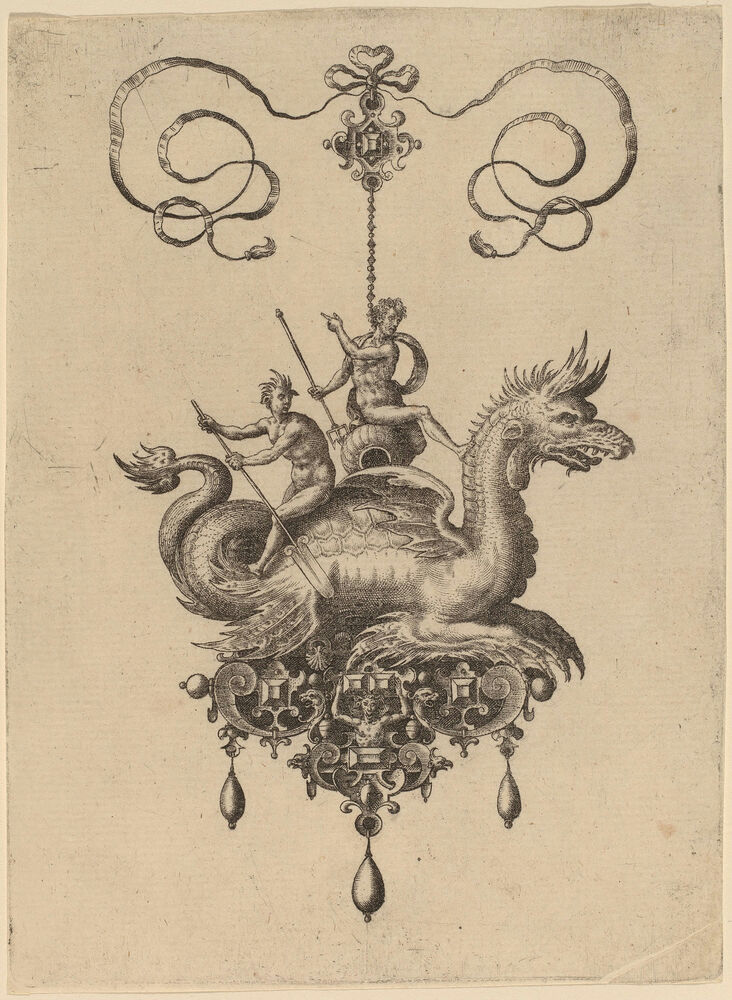 Design for a Pendant with a Sea-Monster Carrying Neptune on an Urn Flanked by a River-God with an Oar