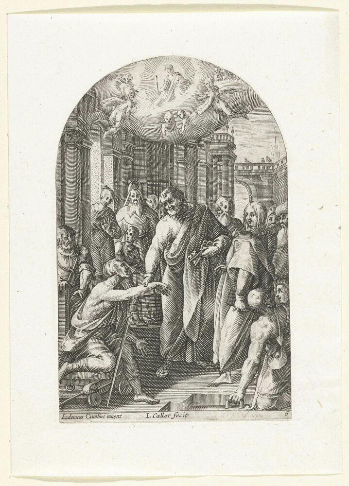 Petrus en Johannes genezen een verlamde man bij de tempelpoort