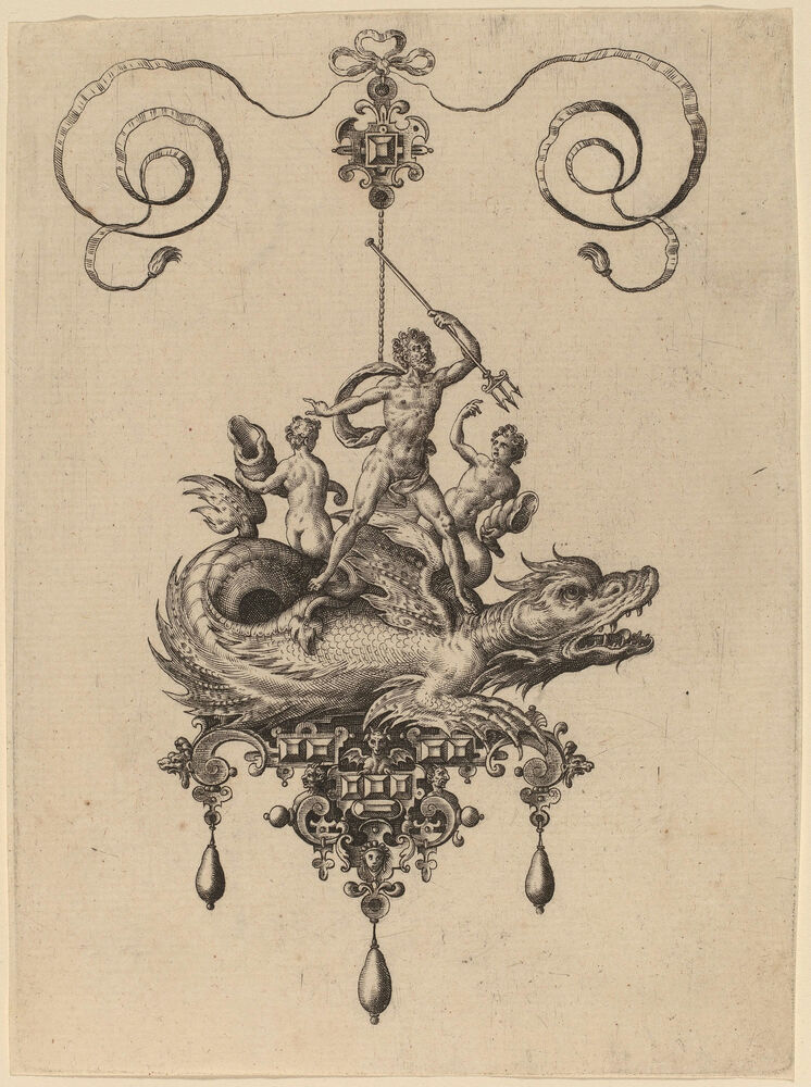 Design for a Pendant with a Sea-Monster Carrying Neptune Flanked by Two Figures