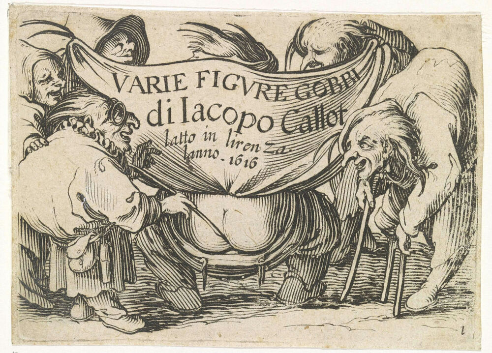 Titelprent voor prentserie 'Diverse gebochelden'/'Varie figure gobbi di Jacopo Callot'