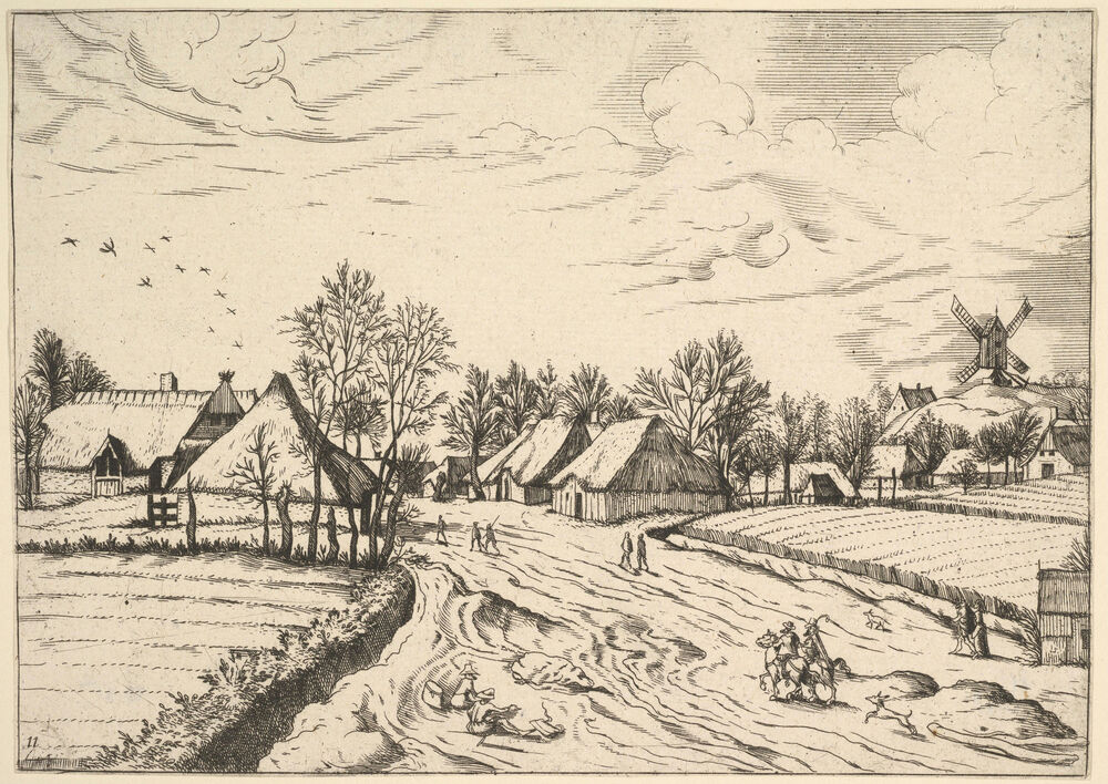 Country Village with Post Mill from Multifariarum casularum ruriumque lineamenta curiose ad vivum expressa