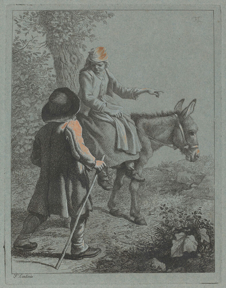 Peasant Woman Seated on a Donkey and a Peasant Man