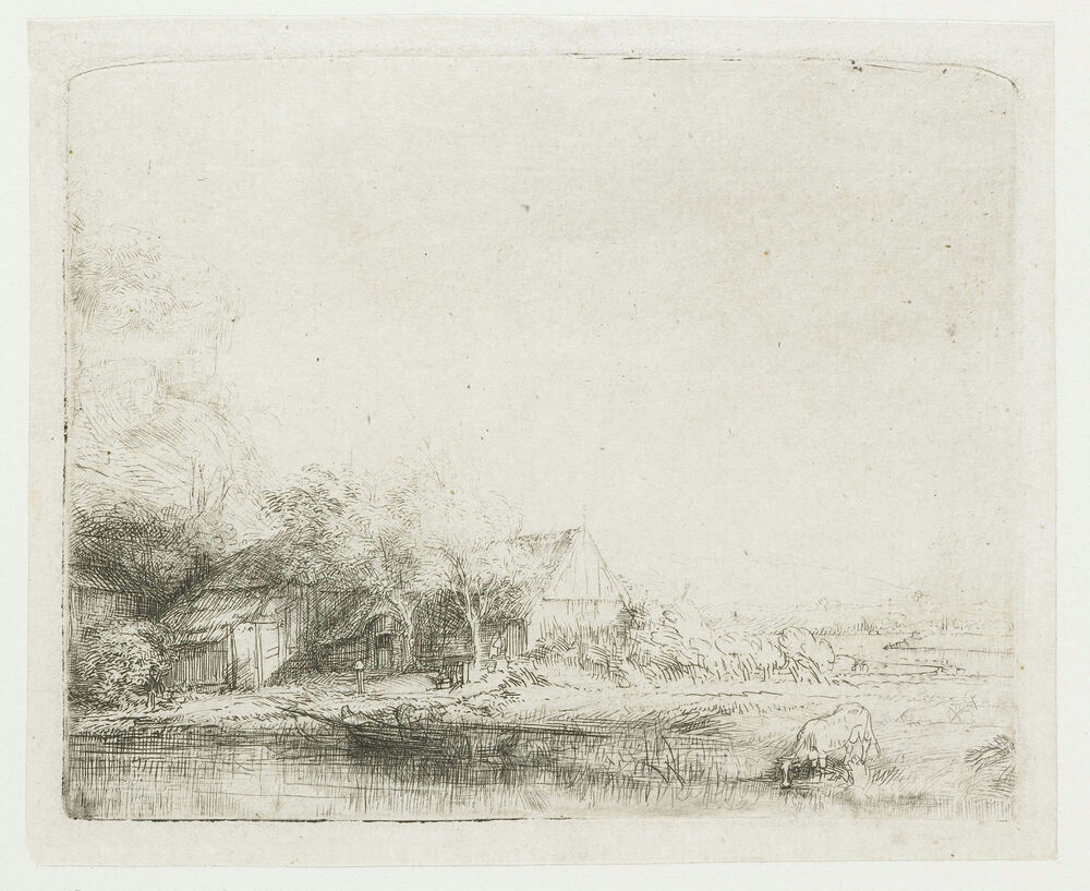 Landscape with a cow drinking