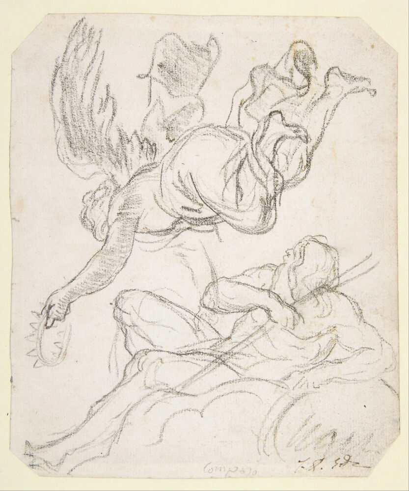 Flying Figure Holding a Crown, Reclining River God