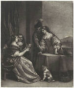 Vrouw in Venetiaanse kleding met een baret in de handen