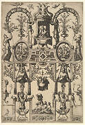 Personification of Earth, with Spade and Horn, Supporting a Tree and Lattice on His Head, A Frieze underneath from Veelderleij niewe inventien van antijckesche sepultueren diemen nou zeere ghebruijkende is met noch zeer fraeije grotissen en compertimenten zeer beqwame voer beeltsniders antijcksniders schilders en all constenaers...Libro Secundo