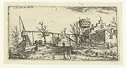 Schaatsers op het ijs bij een molen in de buurt van Penningsveer