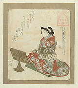 Surimono illustrating a writing desk